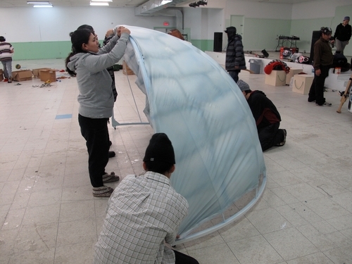 Atelier : juillet 2011, Salluit. Cet atelier faisait suite aux 2 premiers de 2009 et rassemblait un groupe intergénérationnel qui avait le mandat de déterminer les orientations du futur répertoire théâtral. L’histoire de l’orphelin fut le sujet choisi comme priorité par le groupe.